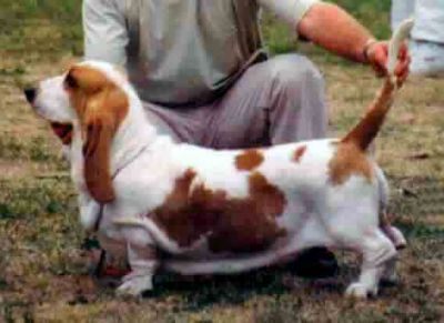 Georgia won her first CC under breed specialist the late Cynthia Johnston at Paignton 1995. She was beaten for Best of Breed by her kennel mate Champion Switherland Desert Orchid. Her Res. CC’s were won under breed specialist the late Jean Rowett Johns at LYC Basset Hound Club 1995. Her second Res.CC came in 1996 at the Hadrian Basset Hound Club, under breed specialist Brian Pocock. She is the dam of Champion Switherland Color Me Blue.