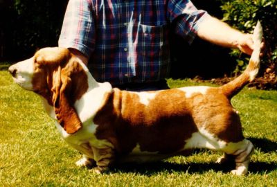 Penny was not heavily campaigned; on her two occasions at Crufts she won her class, Special Yearling under breed judge the late Stella Hipkins. Her second visit to Crufts winning Limit Bitch, under top all-rounder Marion Spavin, Penny’s first CC came at City of Birmingham 1994 under top Finnish judge Kari Javinen. Her second CC followed a year later at the same show under another top all-rounder Ellis Hulme. She just failed to make it a hat trick of CC’s the following year at City of Birmingham when she won the Reserve CC under hound specialist Ben Reynolds Frost.